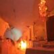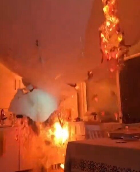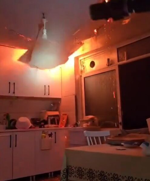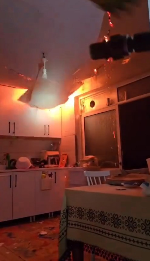 Osmangazi ilçesi Bahar Mahallesi 1’inci Çınar Caddesi’ndeki 4 katlı binanın çatı katındaki dairede 19 Aralık’ta saat 23.30 sıralarında yangın çıktı. Alevler kısa sürede büyüyüp daireyi sardı. İhbar üzerine adrese itfaiye ekipleri sevk edildi. Daireye giren itfaiye erleri alevlere müdahale ederken mutfak tavanı çöktü. Ekipler, çöken tavanın altında kalmaktan son anda kurtuldu. Öte yandan, o anlar kameraya yansıdı.