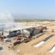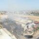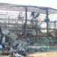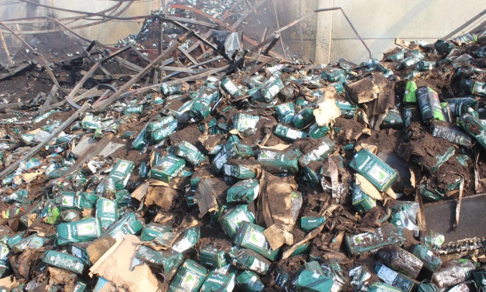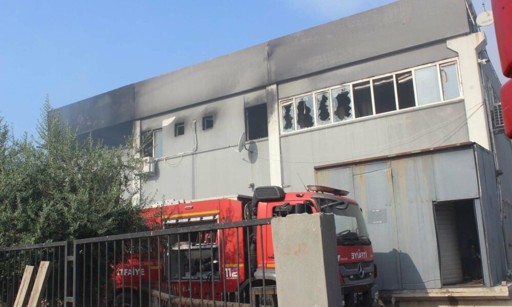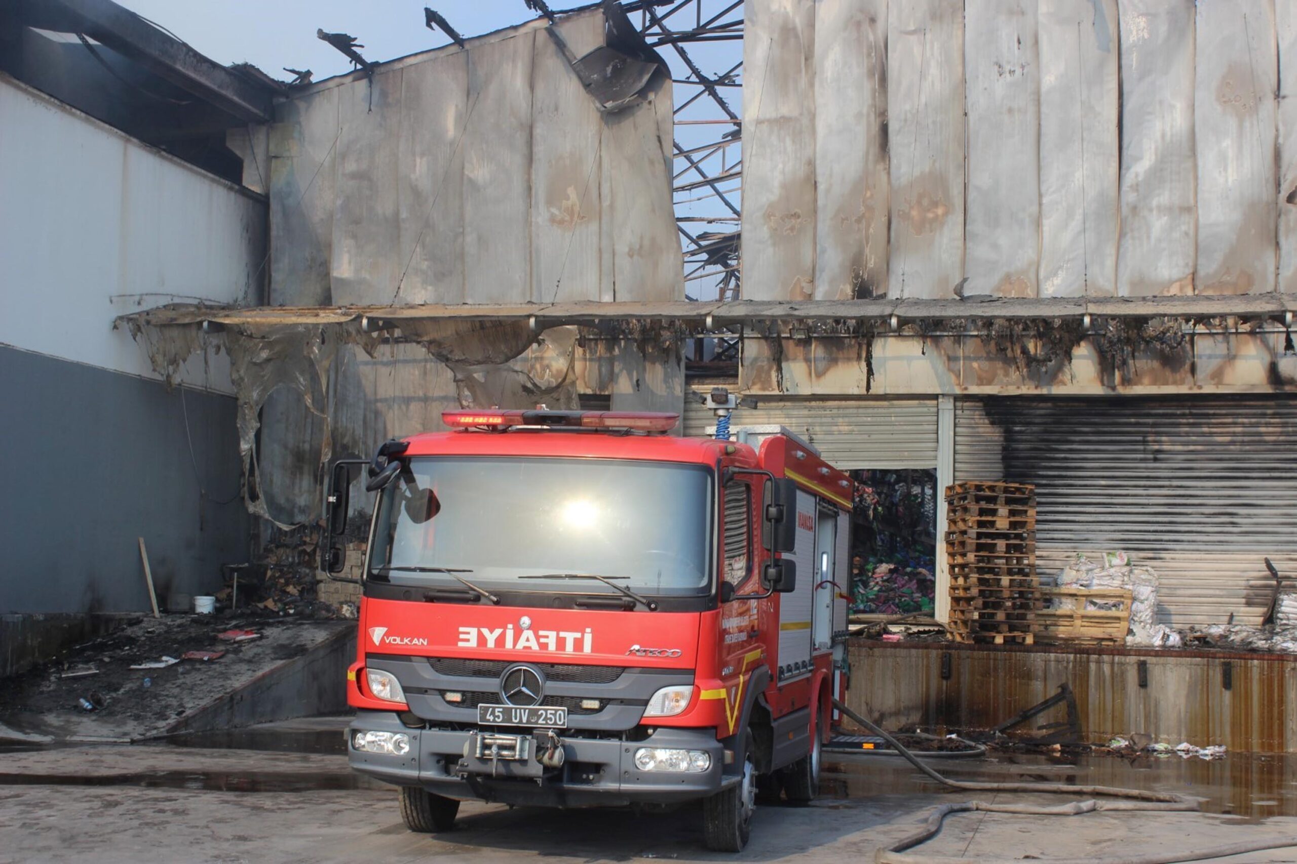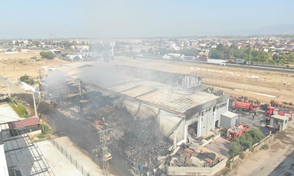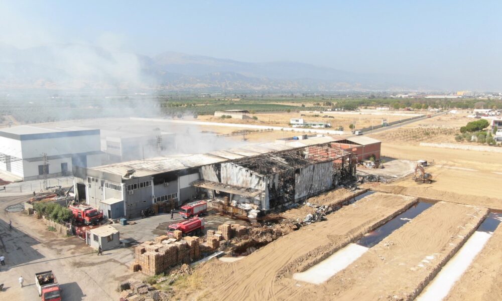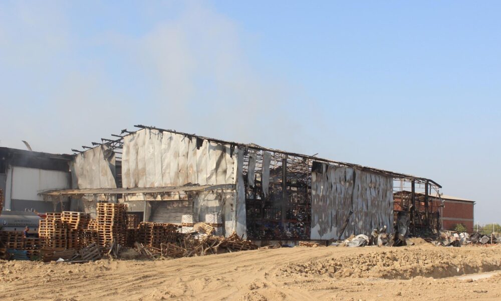 Yangında zarar gören kuru gıda deposu, havadan görüntülendi