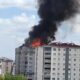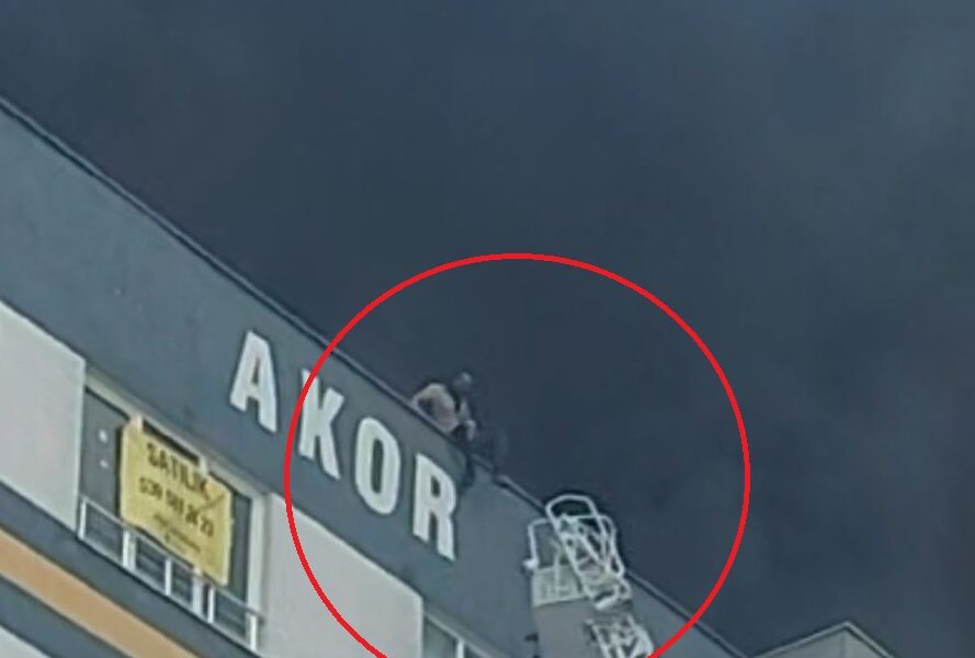 Yangından itfaiye merdiveninin sepetine atlayarak kurtuldu; o anlar kamerada