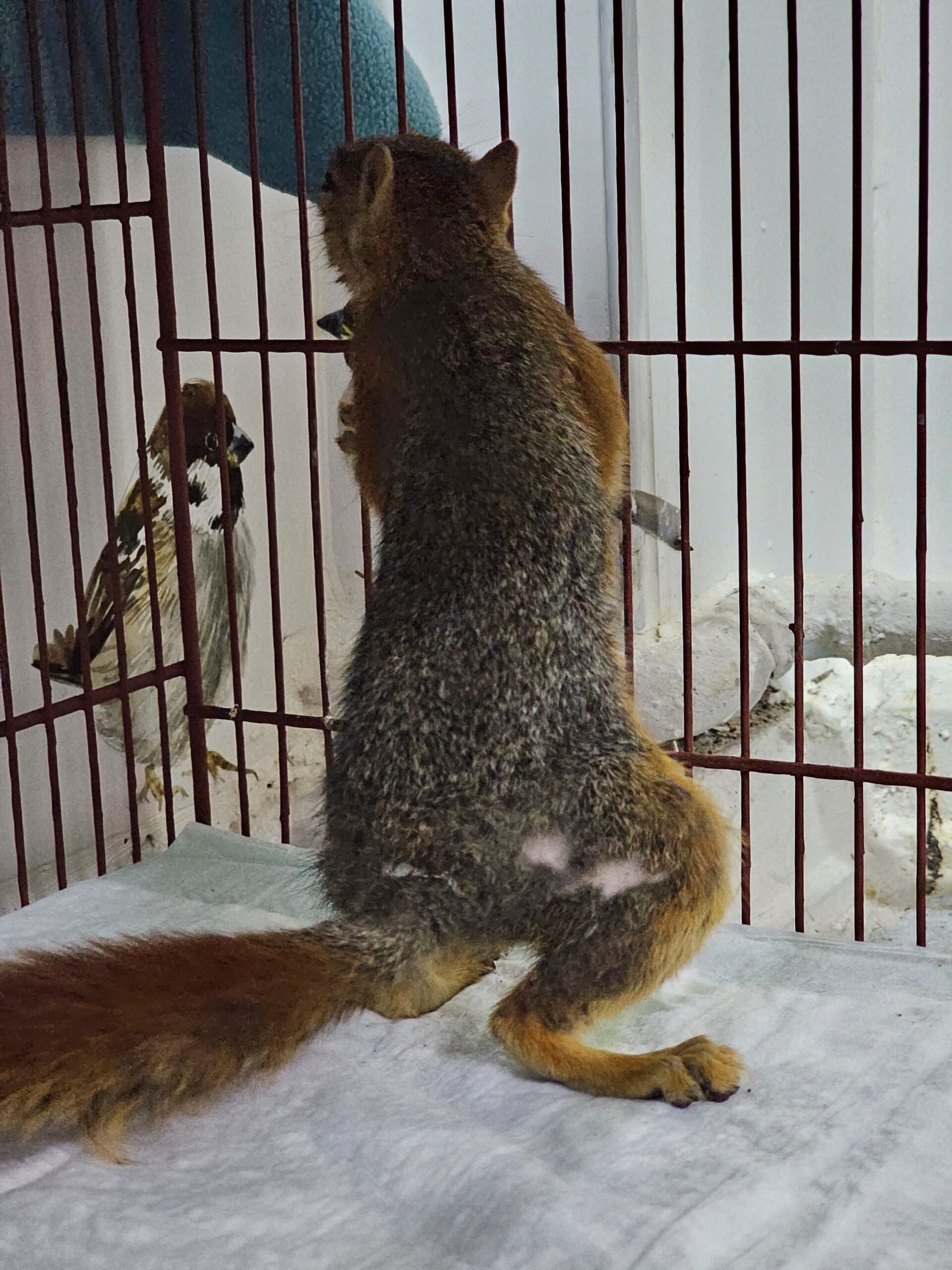 Yangından yaralı kurtarılan yavru sincap tedavi altında