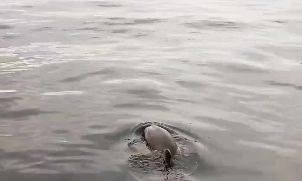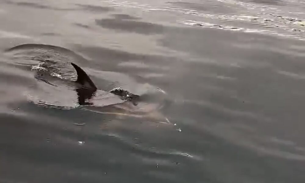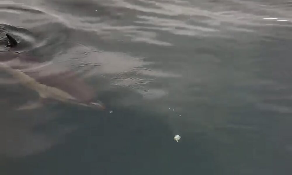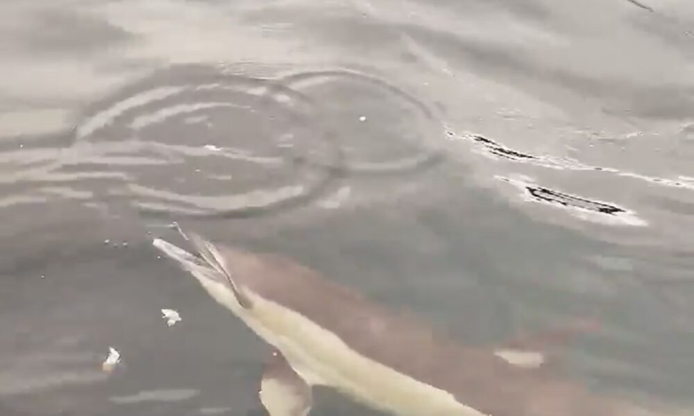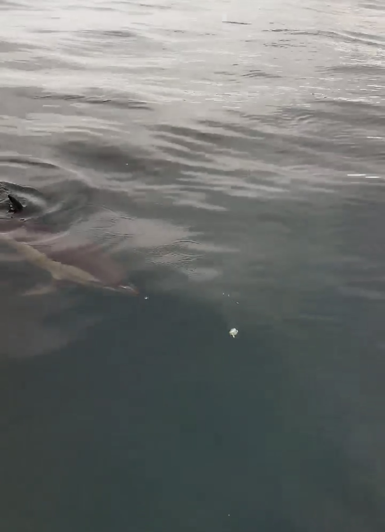 Yanına yaklaşan yunusu ekmek ve domatesle besledi