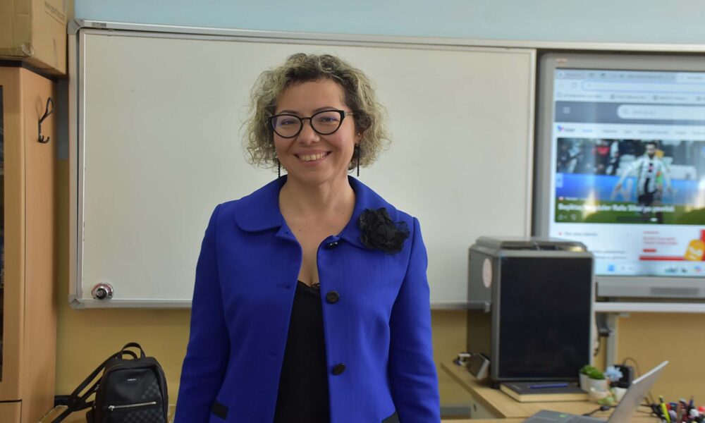 İzmir Buca 30 Ağustos Ortaokulu 5'inci sınıf öğrencileri, İzmir ile ilgili hikayeler yazıp yapay zeka araçlarını kullanarak içeriklerini dijital formata dönüştürdü.Berrin Sakallıoğlu (Fotoğrafta).Fotoğraf:Nevra UÇKAÇ/İzmir,(DHA)