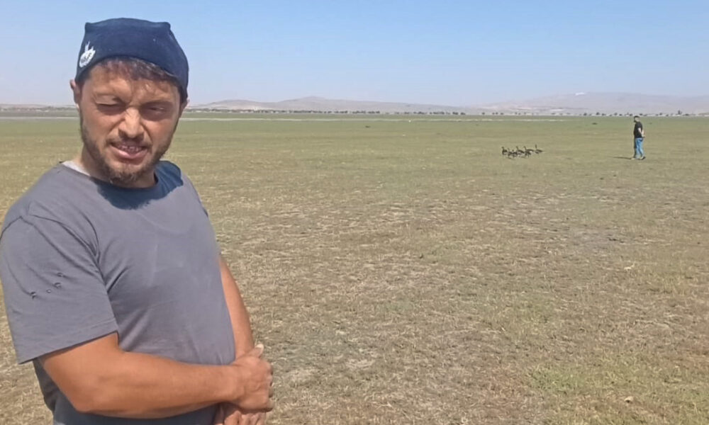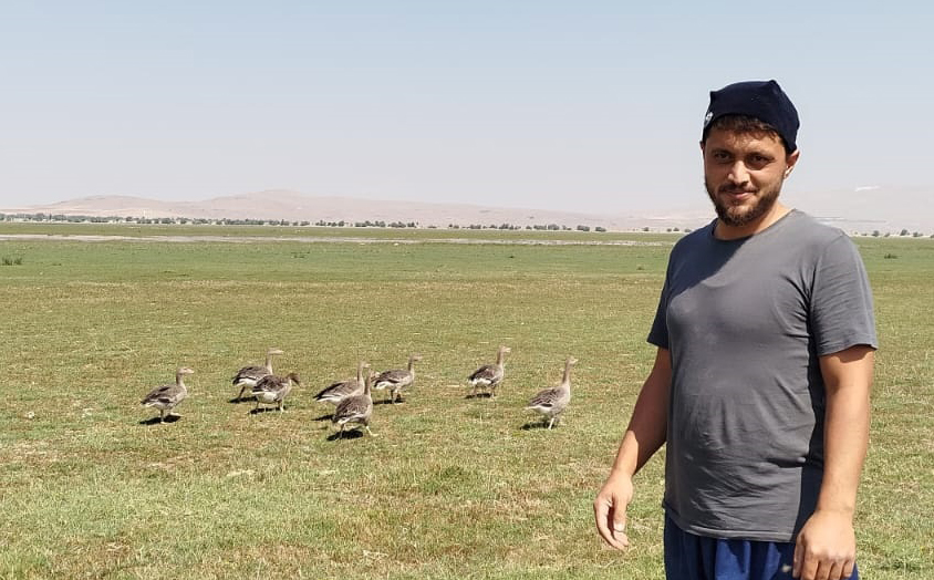 • Konya’da Karapınar ilçesinde yaşayan Lokman Zorlu (30) (Fotoğrafta), 2 yıl önce yolda bulduğu 2'si kanatları kesik,1'i tüfekle açılan ateş sonucu vücuduna saçmalar isabet etmiş yaralı 3 yaban kazını tedavi ettirip, besledi. Fotoğraf: Mehmet OKUYUCU / Kara