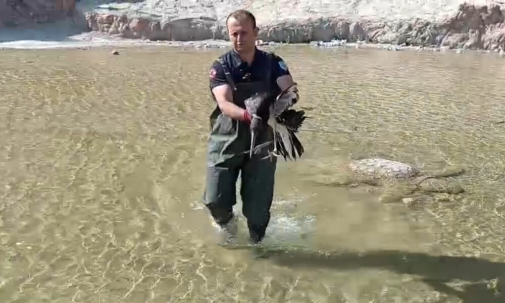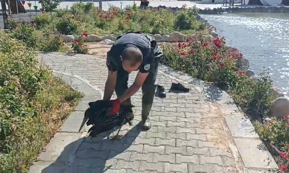 Yaralı leyleği itfaiye ekipleri kurtardı