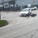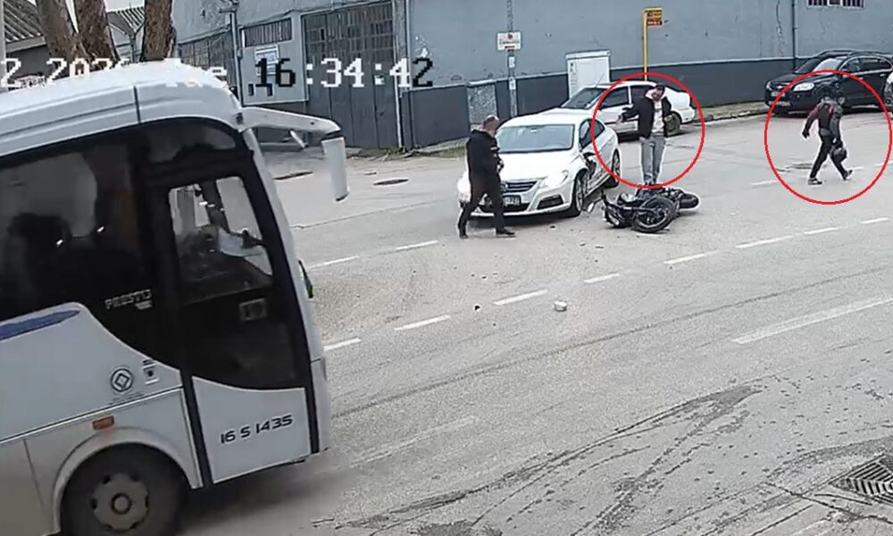 Yerden kalkıp, olası bir yangın riskine karşı kontağı kapatan yaralı sürücü, kazanın şokuyla başındaki kaskı çıkarıp refüje doğru yürüdü. Otomobilinden inen sürücü ise yaralıya yardım etmek yerine aracındaki hasara baktı. O anlar, çevredeki bir iş yerinin güvenlik kamerasına yansıdı.