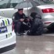 Yaralı öğrenciyi şemsiye ile yağmurdan korumaya çalışan polis: Görevimizi yaptık