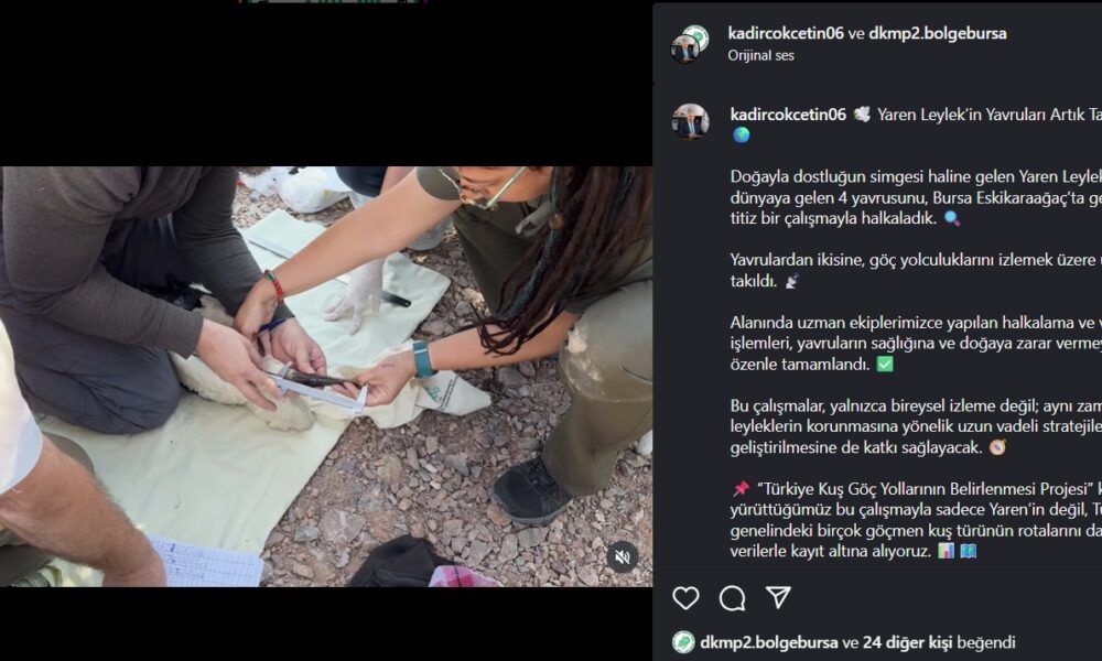 Eskikaraağaç Leylek Köyündeki yuvalarında büyüyen yavrulardan 2sine göç yolculuklarını izlemek için halka takıldı. Doğa Koruma ve Milli Parklar Genel Müdürlüğünün sosyal medya hesabından yapılan paylaşımda, “Yaren Leylekin Yavruları Artık Takibimizde! Doğayla dostluğun simgesi haline gelen Yaren Leylekin bu yıl dünyaya gelen 4 yavrusunu, Bursa Eskikaraağaçta gerçekleştirilen titiz bir çalışmayla halkaladık. Yavrulardan ikisine, göç yolculuklarını izlemek üzere uydu vericisi takıldı. Alanında uzman ekiplerimizce yapılan halkalama ve verici işlemleri, yavruların sağlığına ve doğaya zarar vermeyecek şekilde özenle tamamlandı” denildi.