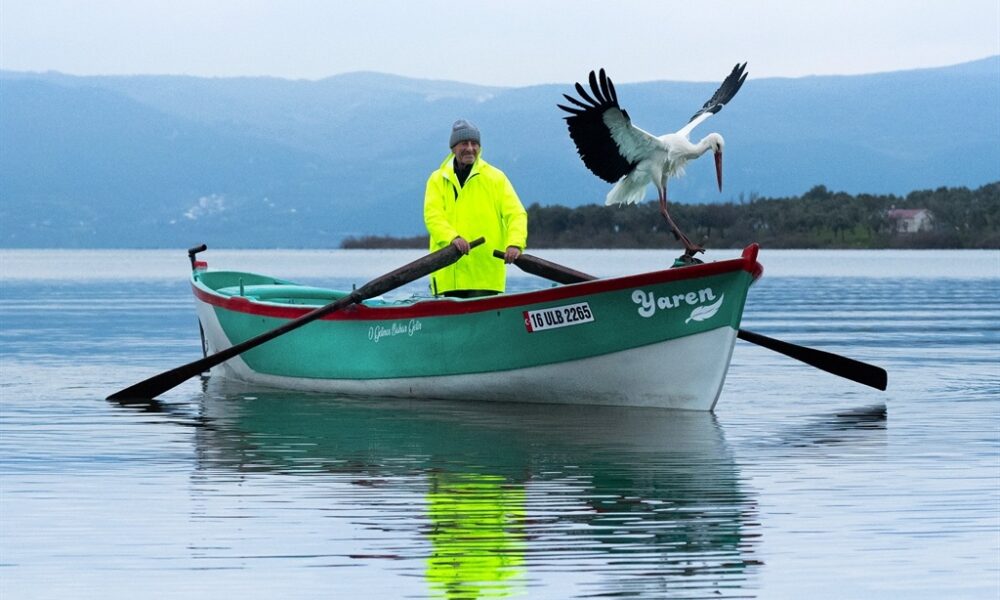 • Bursa'da yaşayan balıkçı Adem Yılmaz (70) ile dostluğu filme konu olan ve Eskikaraağaç Leylek Köyü'ne bu yıl 15'inci kez gelen Yaren Leylek (Yuvada), eşi nazlı (Havada) ile buluştu. Fotoğraf: Bursa, (DHA)