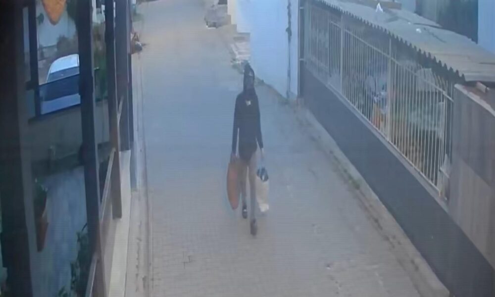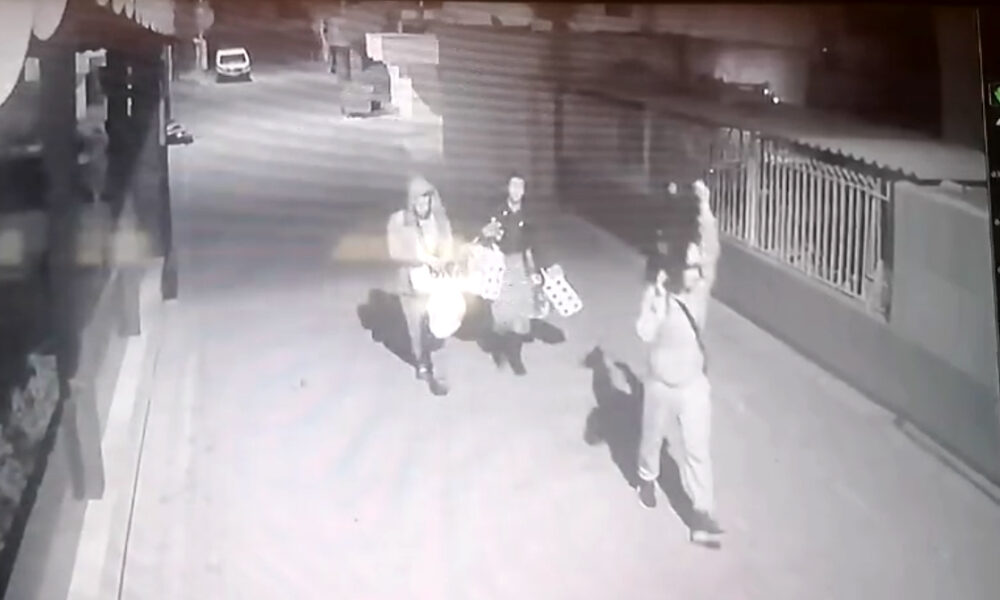 • Hırsızların çaldıkları eşyalarla apartmandan ayrılmaları güvenlik kameralarına yansıdı. Fotoğraf: Erdemli/(Mersin), (DHA)