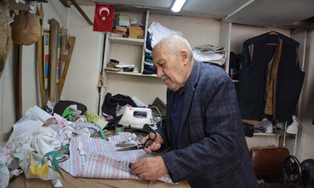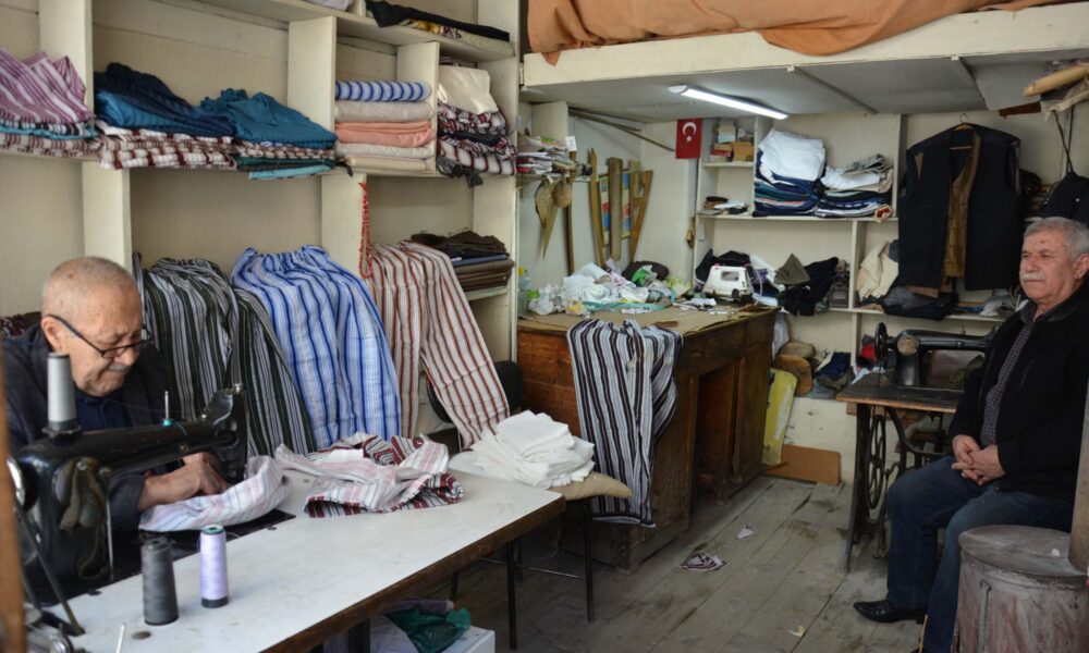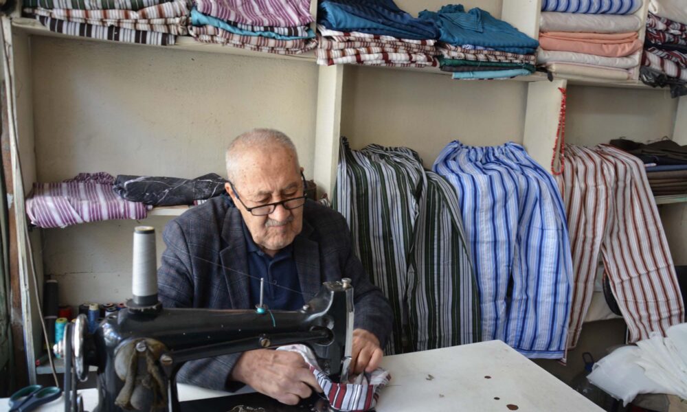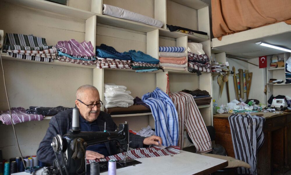 Yaşar usta, 12 metrekarelik dükkanında nostaljik çizgili pijamaları 60 yıldır üretiyor