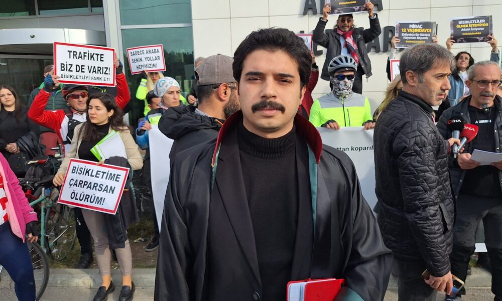 Duruşma öncesi aileye destek olmak için adliyeye gelen gönüllü bisiklet grubu üyeleri adına açıklama yapan Kemal Yücel, olayın basit bir trafik kazası olarak değerlendirilemeyeceğini söyledi.