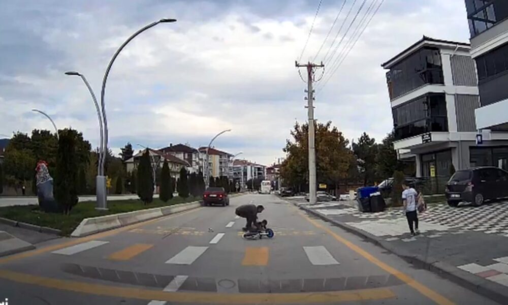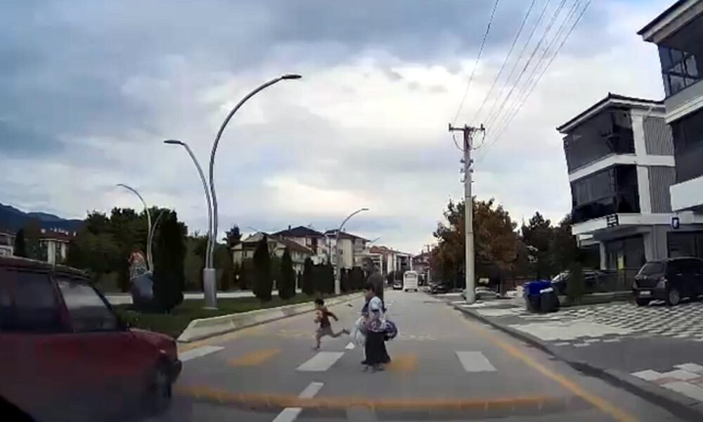 • Bolu’da babası ve ağabeyiyle yolun karşısına geçmeye çalışan H.M.B.’ye (4), yaya geçidinde otomobil çarptı. Çocuk kazada yaralanırken, kaza anı yayalara yol veren aracın kamerası tarafından kaydedildi. Fotoğraf: Bolu,(DHA)