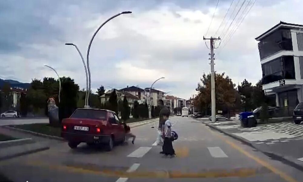 Bu arada kaza, yaya geçidinde duran otomobilin araç içi kamerasına yansıdı. Sürücü ifadesi alınmak üzere polis merkezine götürüldü.