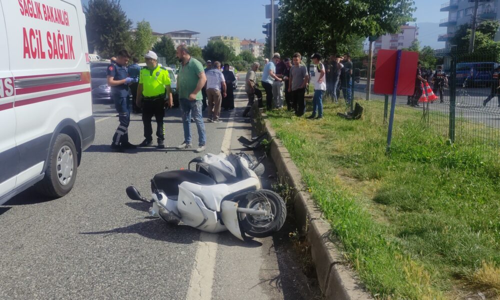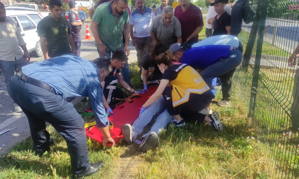 Yaya geçidinde otomobilin çarptığı motosikletin sürücü yaralandı