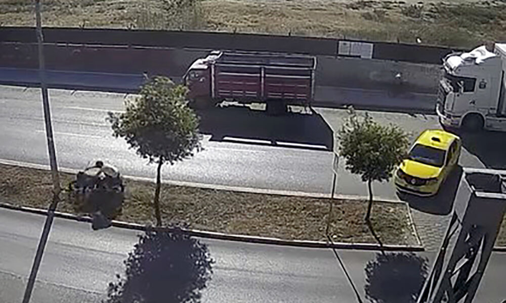 • Adana'da yaya geçidinden karşı istikamete geçmeye çalışan taksinin çarptığı motosikletteki Hıdır Pişgin'in öldüğü kaza güvenlik kamerasına yansıdı. Fotoğraf: Adana, (DHA)