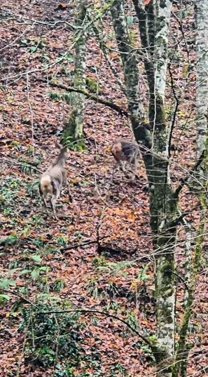 Yedigöller’de ormanda gezinen geyikler kamerada