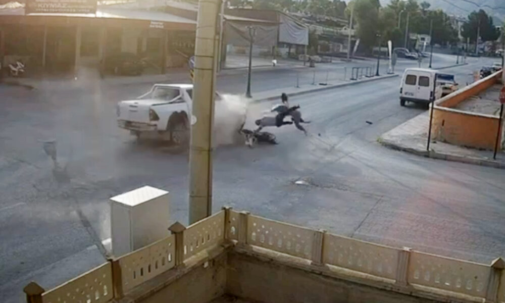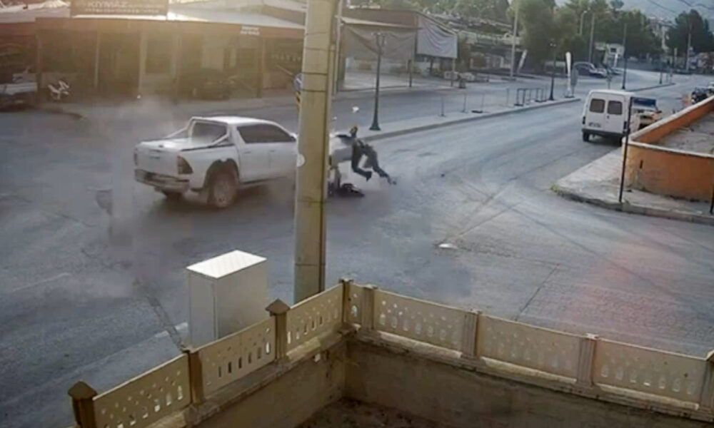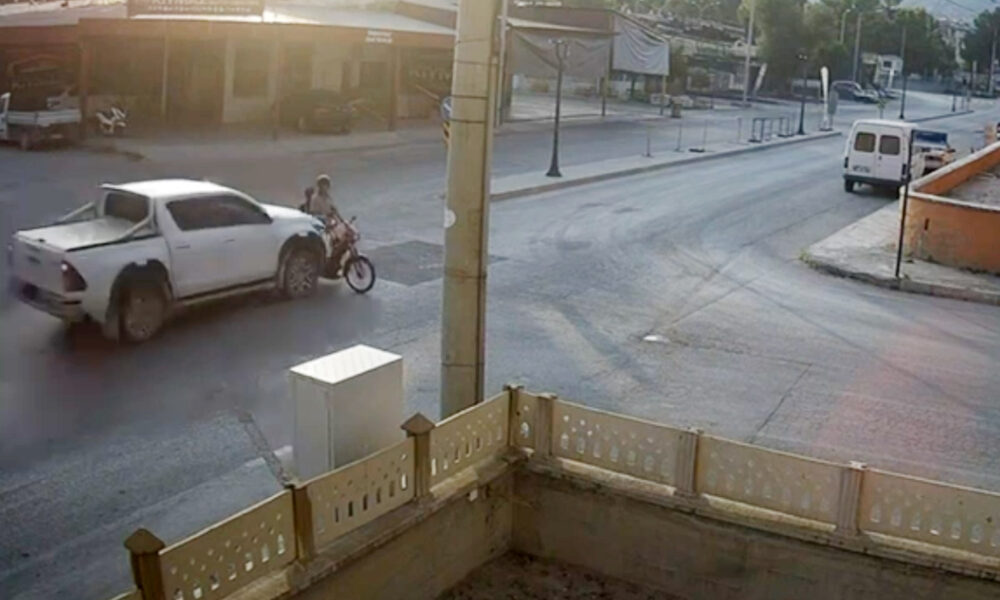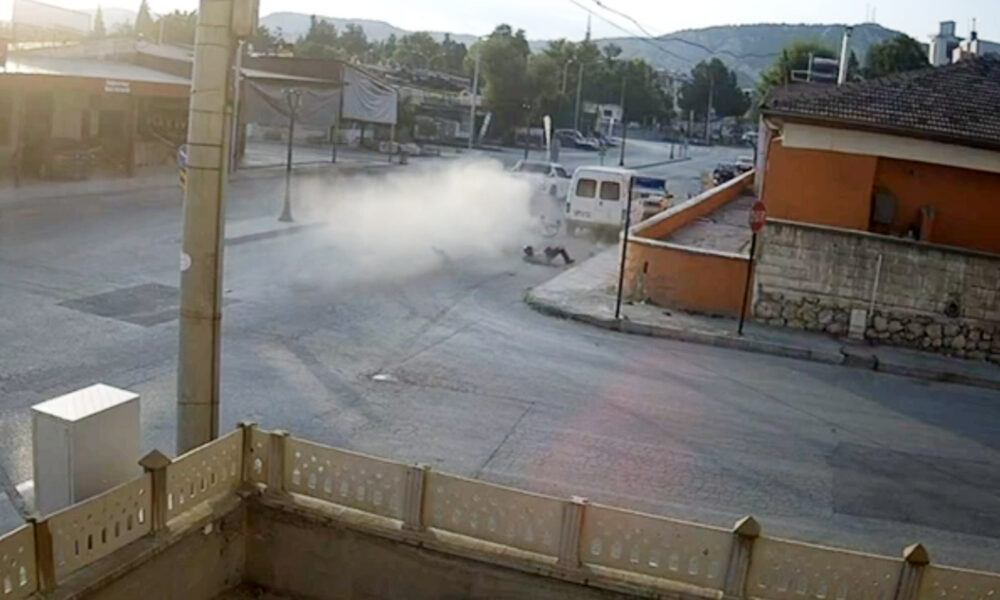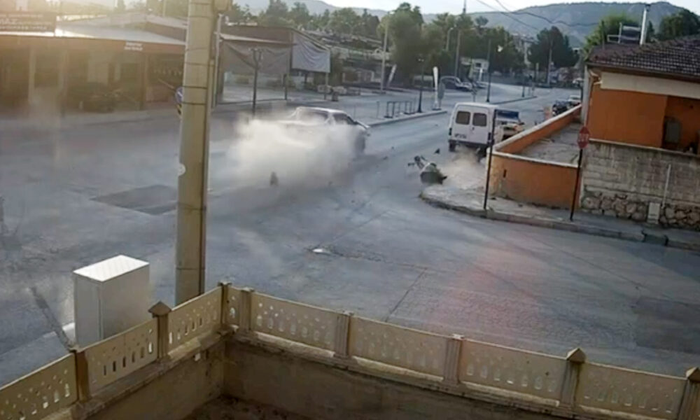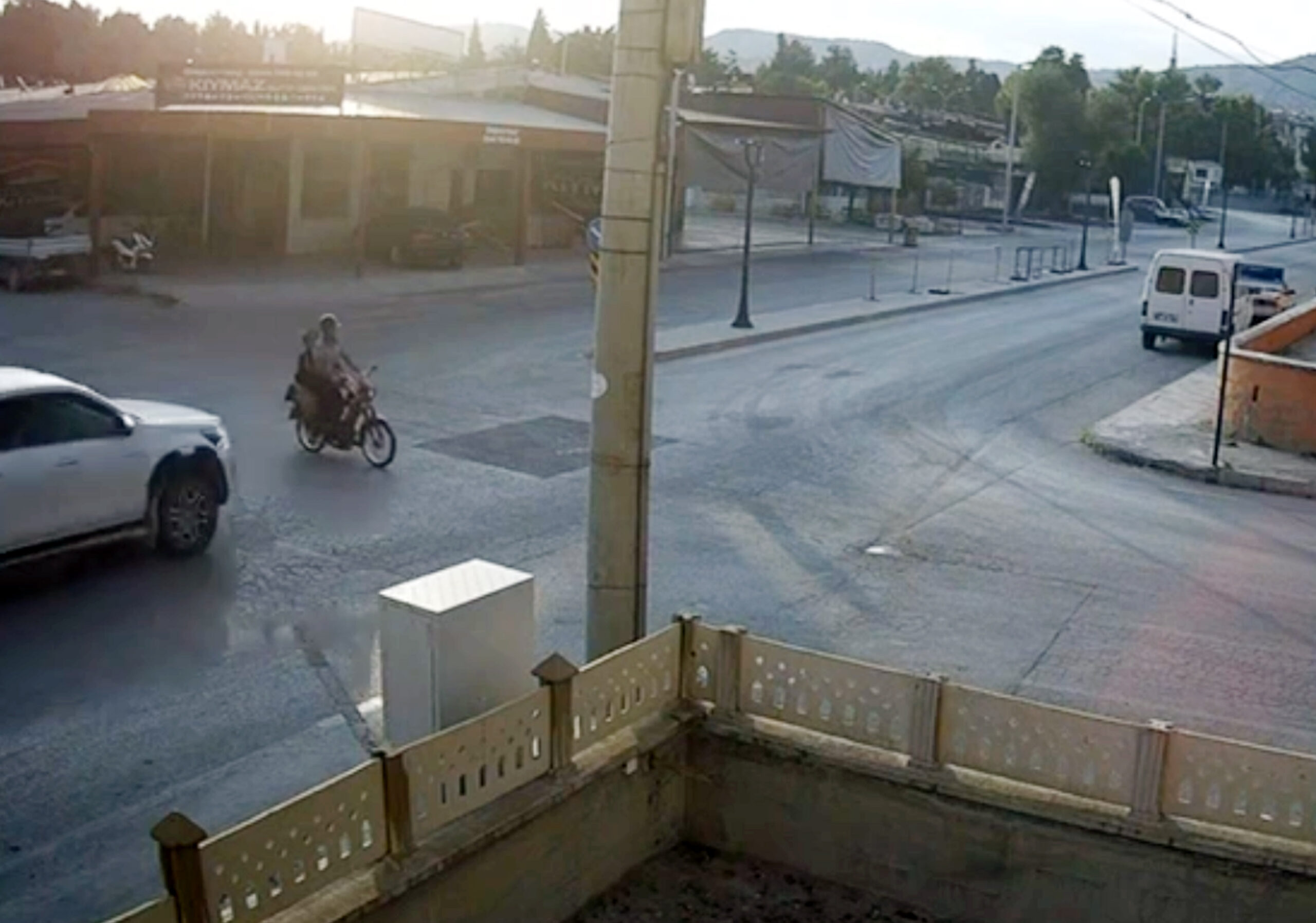Burdur'da kamyonetle çarpışan motosikletteki Hüseyin Öz (41) yaralanırken, 3 ay önce evlendiği eşi İlknur Öz (34) hayatını kaybetti. Kaza, güvenlik kamerasına yansıdı. Fotoğraf: Burdur, (DHA)