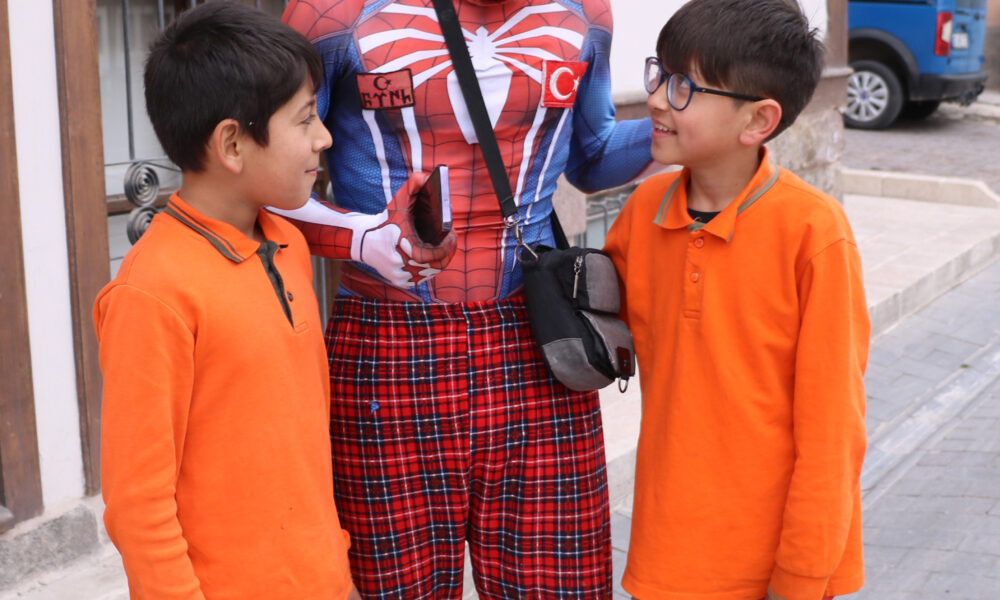 6 Şubat depremlerinin ardından bölgeye gönüllü gittiğini söyleyen Ayaz Salih Koç, “5 bölgede kaldım. Adana, Malatya, Hatay, Gaziantep ve Diyarbakırda AFAD müdürlerinden çadır kent istedim. Bana çadır verildikten sonra annesini, babasını kaybetmiş çocuklarla ilgilendim. Onlara resim yarışmaları yaptırdım, oyunlar oynattım, onların manevi olarak yanında bulundum. Deprem bölgesi, gerçekten anlatılmaz yaşanır. Ülkemizde bu acı felaketlerin yaşanmamasını diliyorum. Bu olayları yaşadıktan sonra asker ve polis ağabeylere yemek yapma şansımız oldu. Ondan sonra Türkiyeyi gezme kararı verdim. Çıktım bir hikayeye, kendim sosyal medyada videolar çekiyorum. Tarihi yerleri, yöresel lezzetleri anlatan Türk örümcek adam oldum. Her şehirde gezdim, dolaştım, esnafın, çocukların yanına gittim, gençlerle söyleşiler yaptım. Çocukları mutlu ettim, hatta bazen çocukların anneannesi ve babaannesine videolar gönderdim. Elimden gelen her şeyi yaptım. Her şehri tanıtmaya devam ediyorum” dedi.