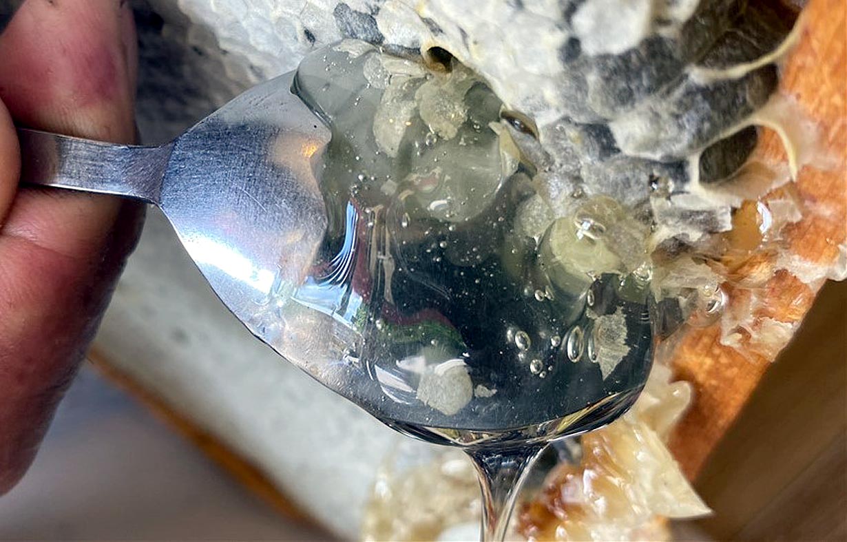 Susuz ilçesinin Karapınar köyünde 50 kovanıyla yıllardır arıcılık yapan 4 çocuk babası Aliyar Çelebiler, bal süzümü için kovanların yanına gitti. Çelebiler, kovanlardan birinden sızan balın yeşil renkte olduğunu gördü. Kovanları açıp süzdüğünde birçok çerçevedeki balın yeşil renkli olduğunu fark etti. Balların yeşil renkte olmasını bol yağış ve kovanların çevresindeki bitkilere bağlayan Aliyar Çelebiler, “Komşular ve yakınlarım köydeydi, biz de kovanı ilk açtığımızda göz hakkı olan ikramda bulunmak istedim. Yeşil renkteki bir çerçeveyi ikiye bölüp ikram ettim. Diğer çerçeveye baktım o da yeşil. Balı şişeye süzdüğümde tamamen yeşil oldu. Bal birkaç gün geçtikten sonra sarıya döndü. İlk gördüğümde öyle güzel bir yeşil renk vardı ki insan bakmaya bile kıyamıyordu. Deve dikeni diye adlandırılan çiçeklerin bol olduğu zaman bal yeşil olmuş. Yağmur da çok yağınca bizim ballar yeşillenmiş. Ballarımız organiktir. Arıya beslenmesi için şeker bile vermiyorum” diye konuştu.