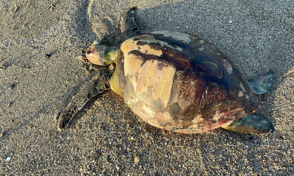 Yeşil deniz kaplumbağası ölüsü sahile vurdu
