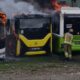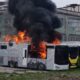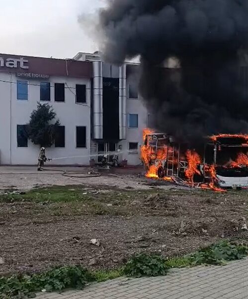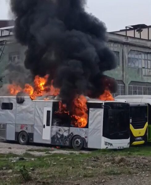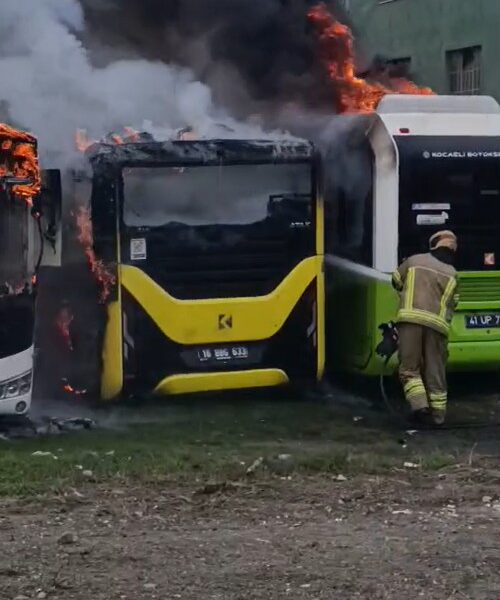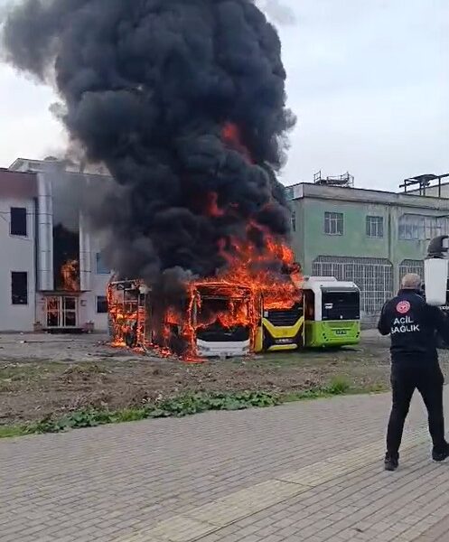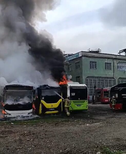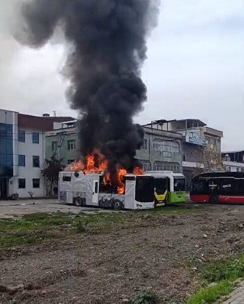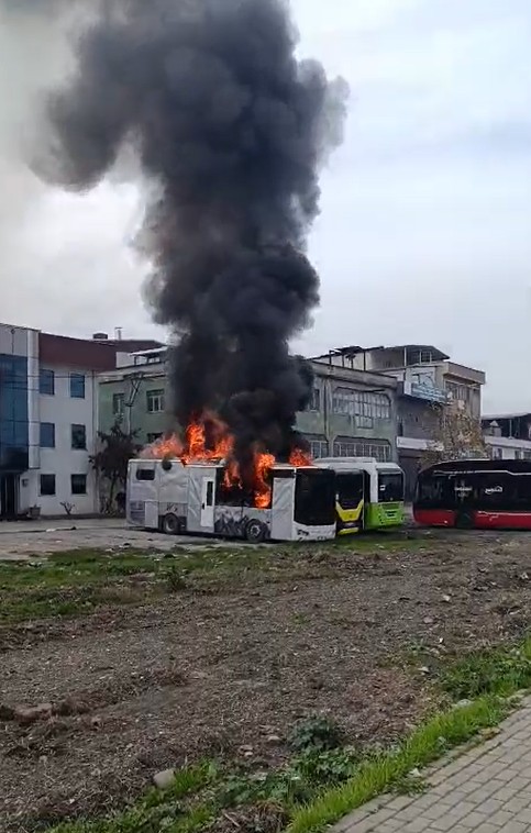 Yetkili servise bırakılan park halindeki 3 otobüs alev alev yandı