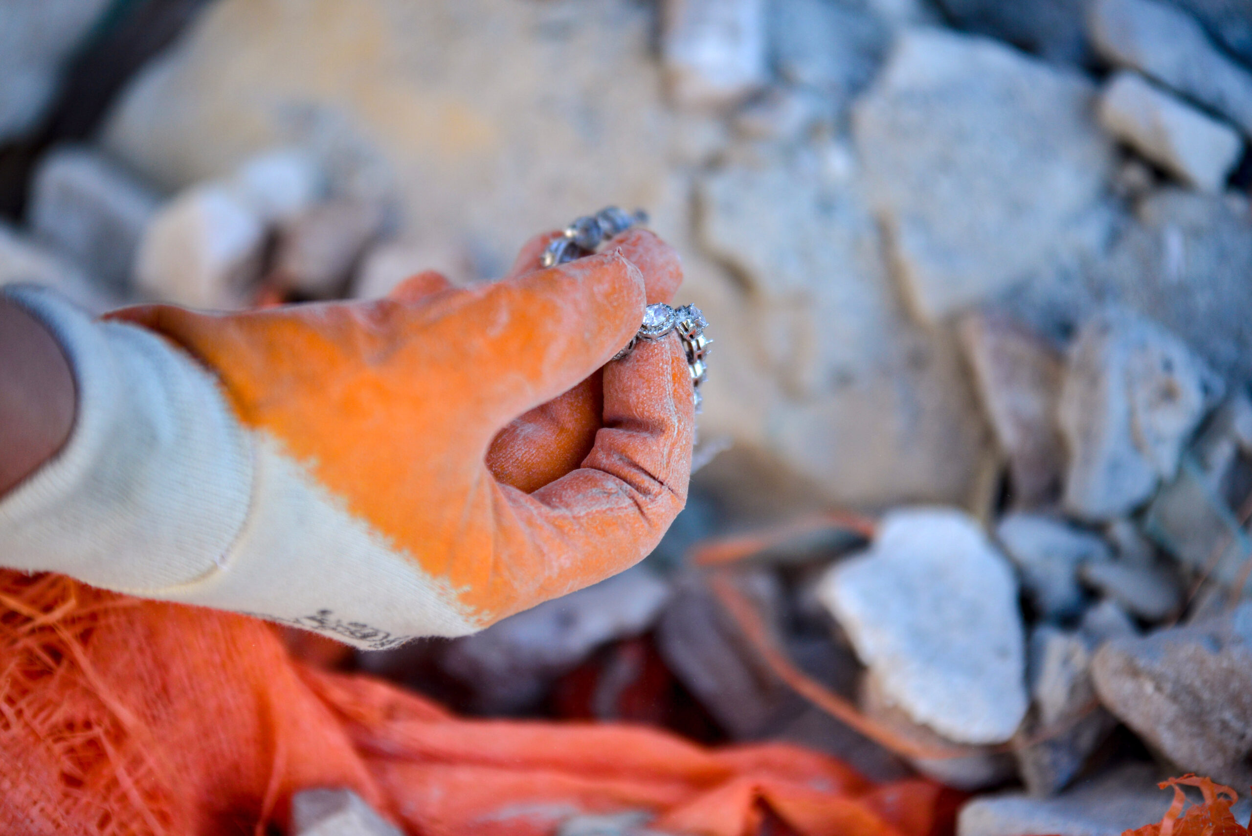 Depremin üzerinden geçen zamanın ardından bazı noktalarda iş yeri sahipleri gelip dükkanlarını kontrol etmeye başladı. Alanda gümüşçü dükkanı bulanan Sertaç Bozkurt da onlardan birisi. Depremin ardından hayatına devam etmeye çalışan Bozkurt, yıkılan iş yerinin enkazında değerli gümüşlerini arıyor. Taşları kaldırıp tek tek kontrol eden Bozkurt, bulduğu gümüşleri kutunun içerisine topluyor.