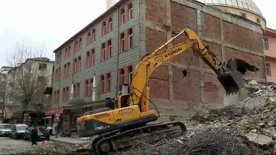ELAZIĞ’da depremde ağır hasar alan binanın bir kısmı, yıkım sırasında çökerek bitişiğindeki caminin duvarlarına zarar verdi.Kahramanmaraş merkezli 6 Şubat’taki depremlerde Elazığ’da, Üniversite Mahallesi’nde ağır hasar aldığı için yıkım kararı verilen binada çalışma başlatıldı. Binanın bir kısmı, kontrollü yıkım sırasında çökerek, bitişiğindeki Bölge Camii’nin duvarlarına zarar verdi. Binanın enkaz kaldırma çalışmaları sürerken, camideki hasarın boyutu araştırılıyor.