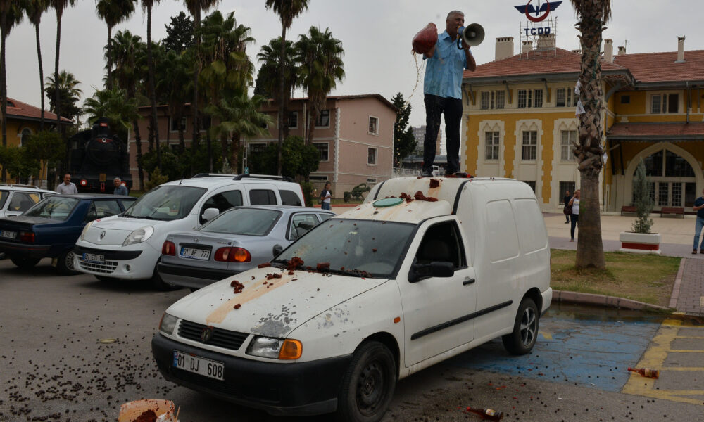 • Osman Aslan, ceza yediği için sattığı malzemeleri etrafa saçıyor. Fotoğraf: Arşiv / Adana, (DHA)