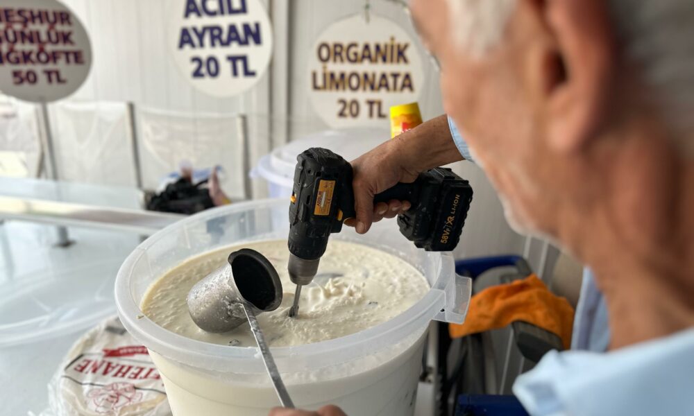 • Osman Aslan, otogarda çiğ köfte ve ayran satarak geçimini sağlıyor. Fotoğraf: Nuri PİR / Adana, (DHA)