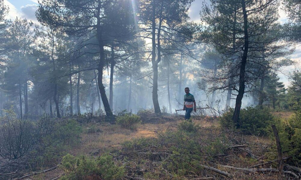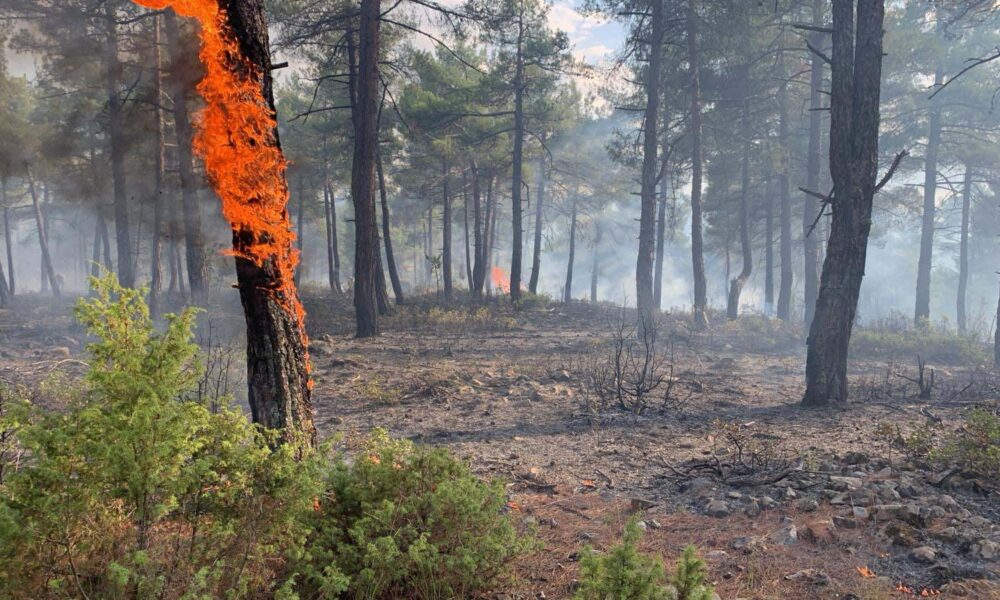 Yıldımı düşen ormanda çıkan yangında 1 hektar alan zarar gördü