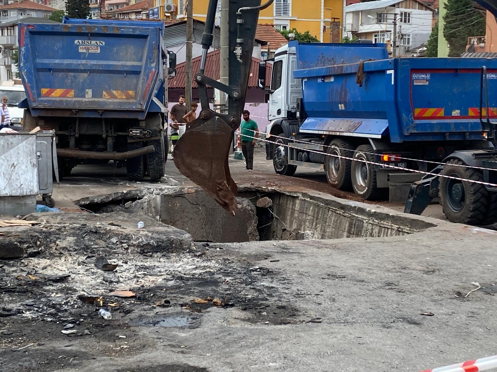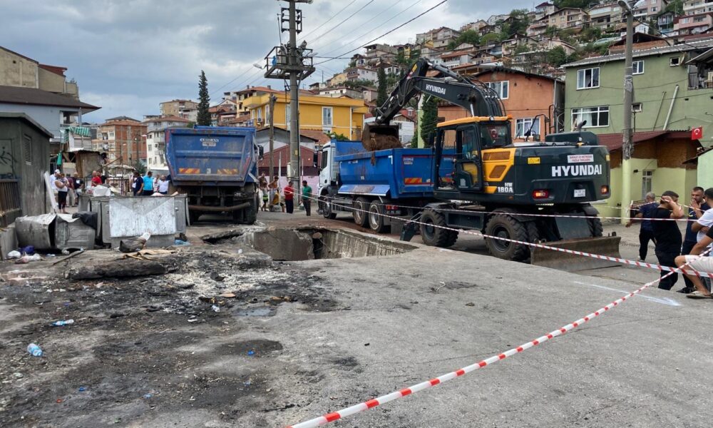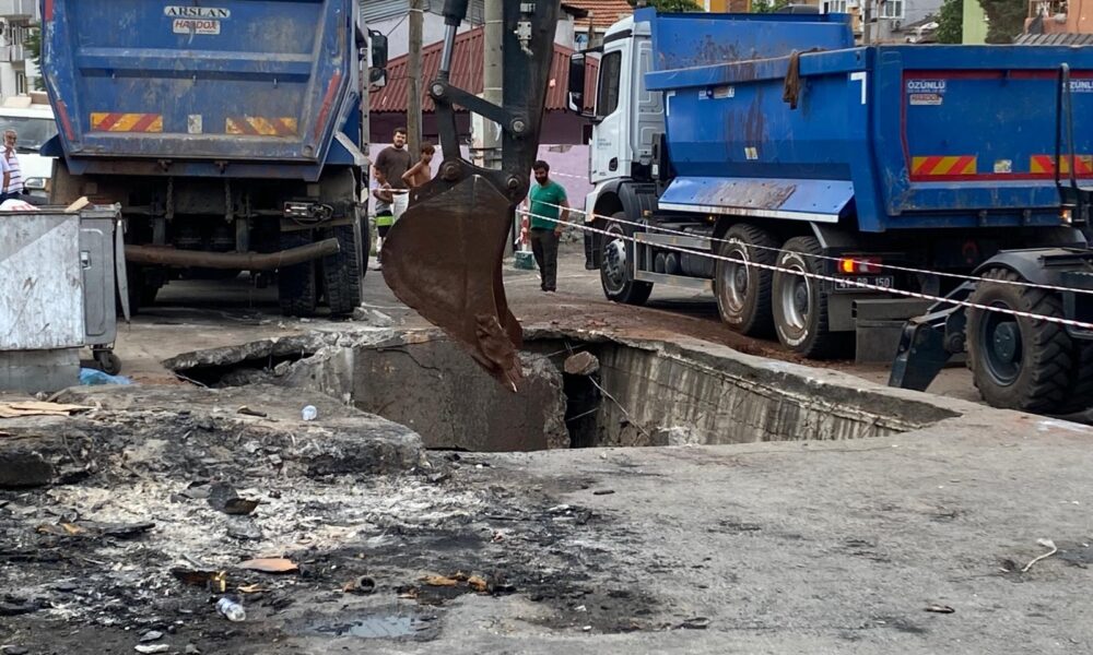 Olay, saat 08.00 sıralarında Serdar Mahallesi Topdemir Sokakta meydana geldi. Hafriyat kamyonu, sokakta ilerlediği sırada, yolun bir bölümü aniden çöktü. Kamyon, oluşan çukurun içine düştü. İhbarla olay yerine polis, sağlık, belediye ve zabıta ekipleri sevk edildi. Ekipler, sokağı emniyet şeridiyle kapatarak çevrede güvenlik önlemi aldı. Sürücüsünün yara almadan kurtulduğu kamyon, vinçle bulunduğu yerden çıkarıldı.