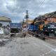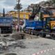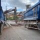 Yol çöktü, kamyon oluşan çukura düştü