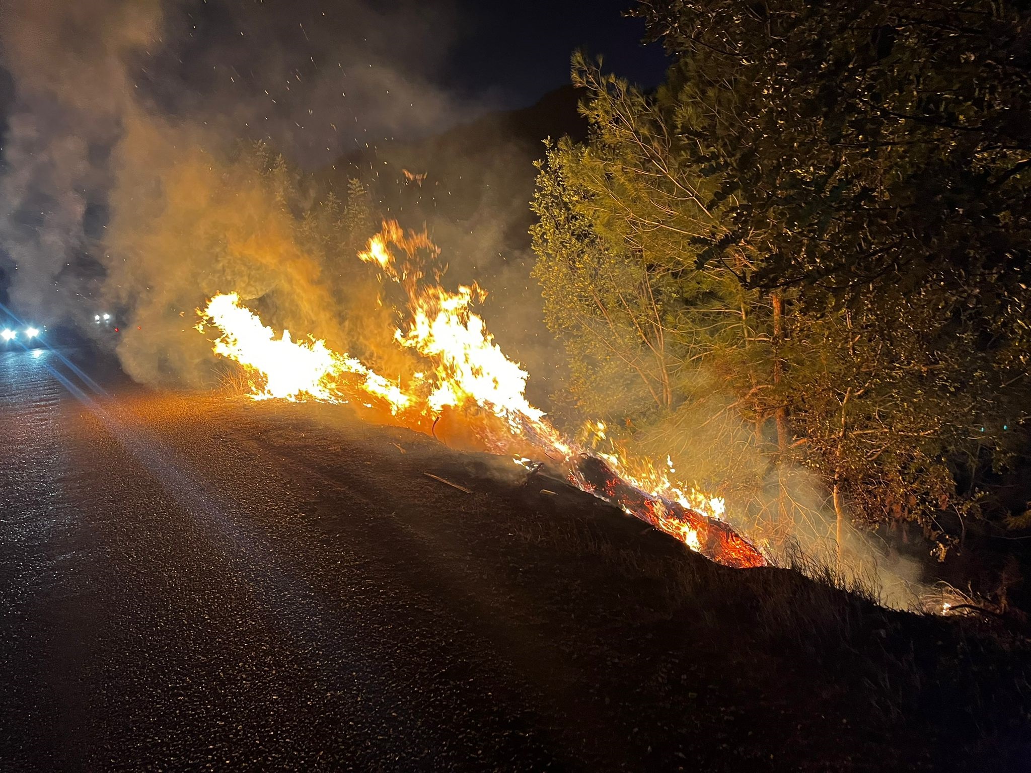 Yol kenarında çıkan yangın, ormana sıçradı