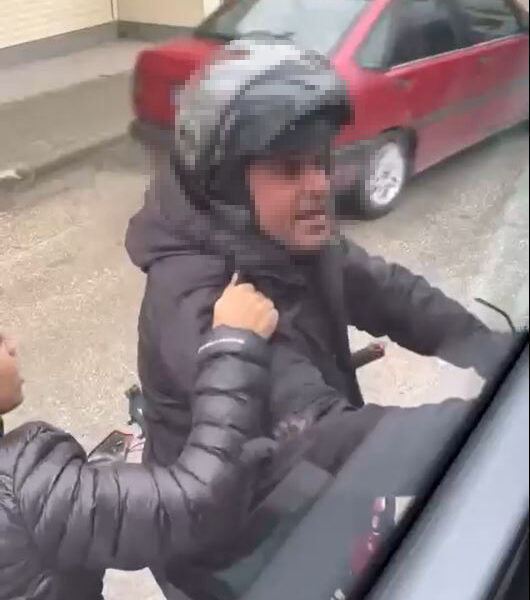 • Adana'da yol verme tartışmasında motosiklet sürücüsünün (Kasklı) servis aracının camını kırdığı anlar, cep telefonu kamerasına yansıdı. Fotoğraf: Adana, (DHA)