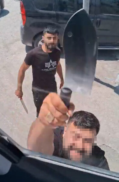Olay, sabaha saatlerinde, ilçedeki Karaağaç Mahallesinde meydana geldi. Trafikte ilerleyen hafriyat TIRı ile otomobil sürücüsü arasında yol verme nedeniyle tartışma çıktı. Tartışmanın büyümesi üzerine otomobilden inen 2 kişi, araçtan inmesi için TIR şoförünü tehdit etti. Şoförün araçtan inmemesi üzerine şüpheliler otomobile dönüp bıçak ve satır aldı. Saldırganlardan biri TIRın camına satırla defalarca vurarak kırdı.