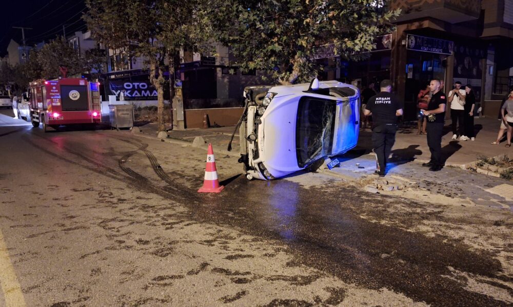 Kaza, gece yarısı sıralarında Cumhuriyet Mahallesi Rasim Ergene Caddesi’nde meydana geldi. B.D. (19) yönetimindeki 35 AC 7194 plakalı otomobil, Tulumba Sokak’a dönüş yaparken yola akan su nedeniyle kayganlaşan asfaltta kontrolden çıktı. Kaldırım kenarındaki beton park mantarına çarpan otomobil takla attı. Kazada, sürücü B.D. ile yanındaki A.S. (19) ve B.Y.K. (19) yaralandı. İhbar üzerine kaza yerine polis, itfaiye ve sağlık ekipleri sevk edildi. Ekipler tarafından araçtan çıkartılan yaralılar, ambulanslarla kaldırıldıkları Keşan Devlet Hastanesi’nde tedavi altına alındı.