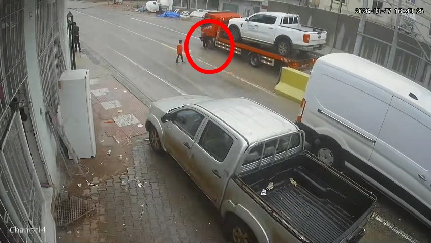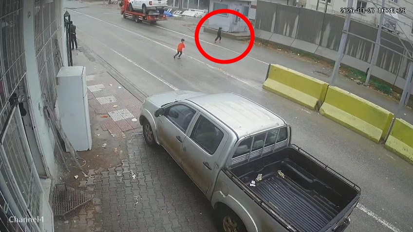 Olay, dün sabah saatlerinde, Kasrik beldesi Cizre-Şırnak kara yolu üzerindeki Kasrik Boğazı mevkisinde meydana geldi. Caddede arkadaşıyla yürüyen çocuklardan biri, bir anda yola doğru koştu. Bu sırada caddede ilerleyen çekicinin sürücüsü, çocuğu fark edip frene bastı. Araçla çarpışmaktan son anda kurtulan çocuk, yara almadı. O anlar, çevredeki iş yerinin güvenlik kamerasına yansıdı.