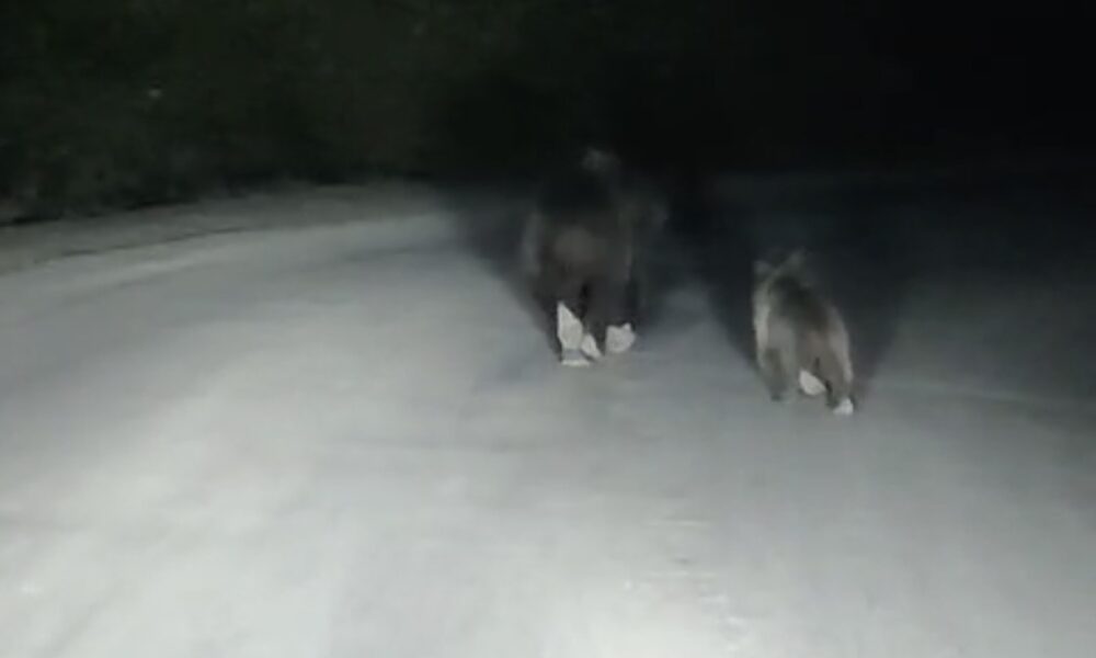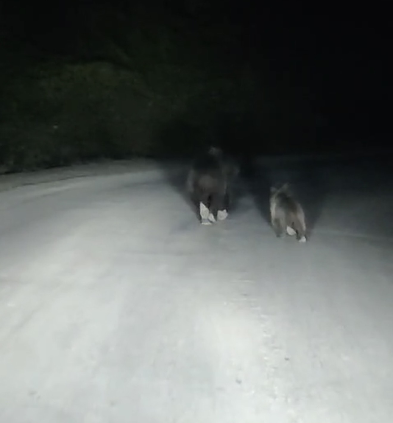 • Bartın'da ormandan köy yoluna inen anne ve yavru bozayı, bir sürücü tarafından cep telefonuyla görüntülendi. Fotoğraf: Ulus, (DHA)