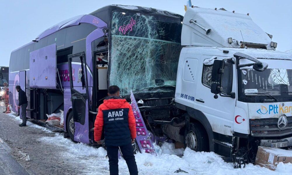 Kaza, Sarıkamış ilçesi Karakurt mevkisinde meydana geldi. Emre Can A.nın kullandığı 06 EE 0189 plakalı kargo kamyonu, kar yağışı nedeniyle kayganlaşan yolda kontrolden çıktı. Kamyon refüje çarparak durdu. Bu sırada seyreden Mehmet Zülküf Ç.nın kullandığı 23 AEV 640 plakalı yolcu otobüsü, kamyona çarptı. Bölgeye, AFAD, sağlık ve jandarma ekipleri sevk edildi. Kazada yaralanan 9 kişi, ambulanslarla çevredeki hastanelere kaldırıldı. Kaza nedeniyle kara yolunda ulaşım kontrollü sağlanıyor.