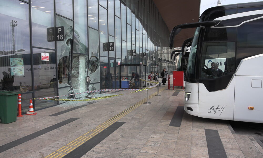 Yolcu otobüsü, perondaki yolcuya çarpıp terminal binasına daldı