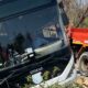 Yolcu otobüsü vinçle çıkarıldı, araçta sıkışan sürücü kurtarıldı