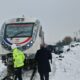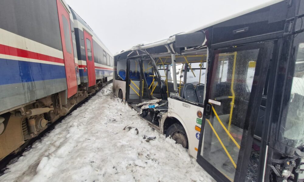 Yolcu treni, hemzemin geçitte belediye otobüsüne çarptı; 1 yaralı