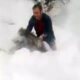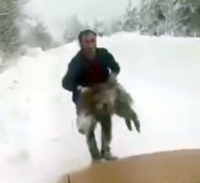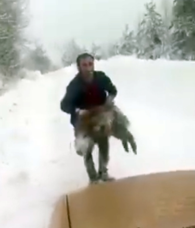 Erfelek ilçesinde karlı yolda aracıyla giden Şenel Yılmaz, yaban domuzu sürüsüyle karşılaştı. Yılmaz aracından inip yavru bir yaban domuzu kovalayarak elleriyle yakaladı. O anlar, cep telefonu kamerasıyla görüntülenirken, Şenel Yılmaz, “Öncelikle bunu başkalarının yakalamasını tavsiye etmem. Daha yaralamalı olaylarla karşılaşabilirler. Ben yakaladım diye kimsenin zarar görmesini istemem” dedi.