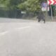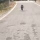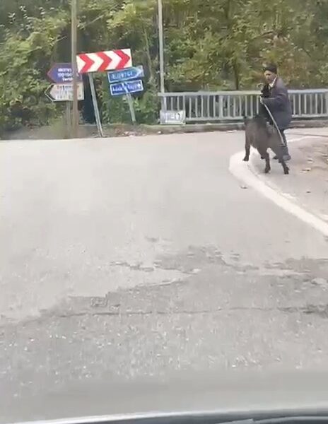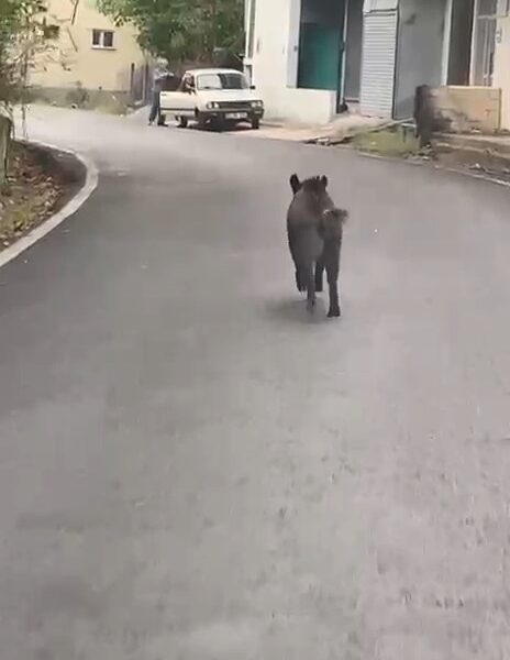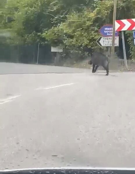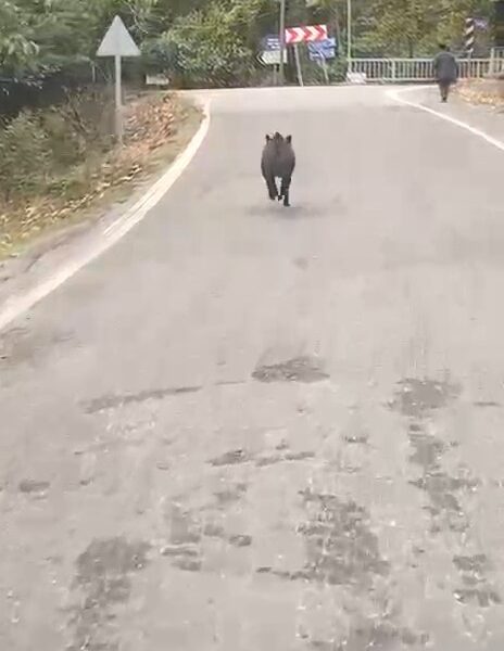 Yolda yürürken üzerine doğru gelen domuzdan son anda kurtuldu