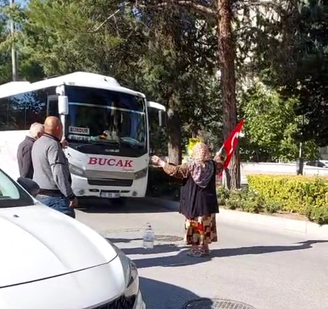Burdurda yaşayan Şerife Özbek, bugün öğle saatlerinde elinde Türk bayrağıyla kent merkezindeki Armağan İlci Bulvarına çıkıp, trafiği durdurdu. İsrail askerlerinin Sumud filosuna yaptığı baskını protesto etmek isteyen Şerife Özbek, araçların geçişine izin vermedi. Şerife Özbek, elindeki bayrağı sallayıp araçta bulunanların ve çevredekilerin İsraile tepki göstermesini istedi. Sürücüler ve çevredekilerin ikna etmeye çalıştığı Şerife Özbek, geçmek isteyen araçların önüne geçerek durdurdu. Bağırarak tepkisini sürdüren Özbek, bir süre sonra ikna edilerek eylemini sonlandırdı.