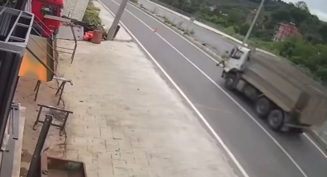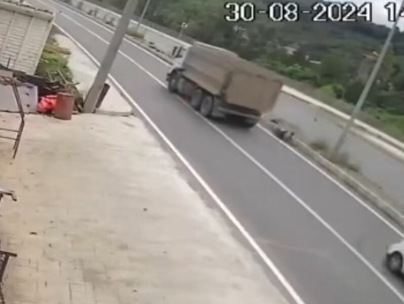Yolun karşısına geçmek isterken hafriyat kamyonunun çarpmasıyla ağır yaralandı; kaza kamerada
