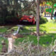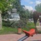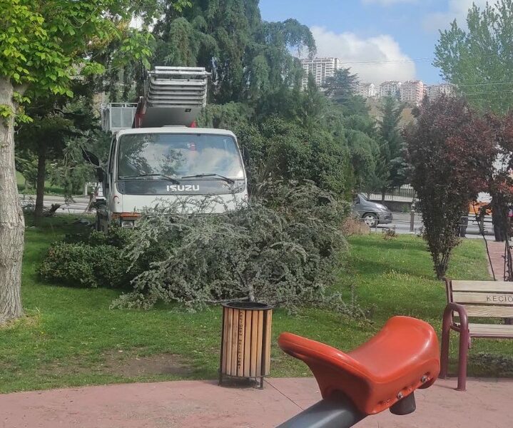 Yük asansörlü kamyonet parka girdi, ağaçlara çarpıp durdu
