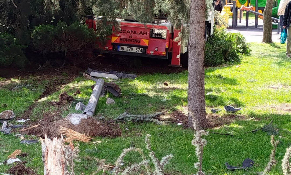 Kaza, Keçiören ilçesinde meydana geldi. 06 EZV 574 plakalı yük asansörlü kamyonet, yan caddeden yola girerken, sürücüsü Nesim Silkenin kontrolünden çıktı, kaldırımı aşıp yol kenarındaki Fatih Terim Parkına girdi. Araç, ağaçlara ve aydınlatma direğine çarpıp, çocuk oyun parkına ise birkaç metre kala durdu. Sürücünün yara almadan kurtulduğu kaza anı, çevredeki taksi durağının güvenlik kamerasına yansıdı. Görüntüde, kaldırımda yürüyen bir kişinin de kamyonetin altında kalmaktan son anda kaçarak kurtulduğu görüldü. Polis, kazayla ilgili inceleme başlattı.
