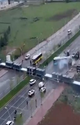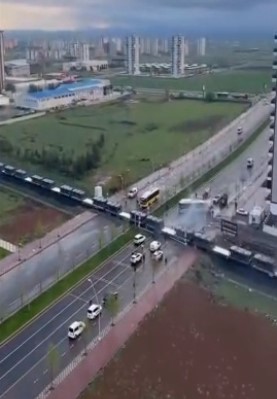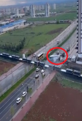 Kaza, sabah saatlerinde Kayapınar ilçesi Mezopotamya Bulvarı’ndaki hemzemin geçitte meydana geldi. Diyarbakırdan Mardin Mazıdağı ilçesine giden yük treni, bariyerleri kapalı iken hemzemin geçitten geçmeye çalışan İ.K. idaresindeki 21 ANN 993 plakalı belediye otobüsüne çarptı. Kazada ölen ya da yaralanan olmazken, otobüsten dumanlar yükselmeye başladı. İhbar üzerine kaza yerine itfaiye ve polis ekipleri sevk edildi. İtfaiye ekiplerinin soğutma çalışması yaptığı otobüs, çekiciyle bulunduğu yerden kaldırıldı.