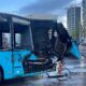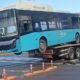 Yük treni, hemzemin geçitte belediye otobüsüne çarptı